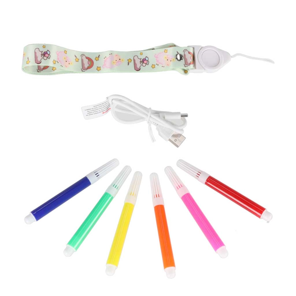 Le coffret inclut une dragonne amovible, un câble de charge USB‑C, un rouleau de papier thermique et 6 mini feutres colorés – il suffit d’allumer et de créer.