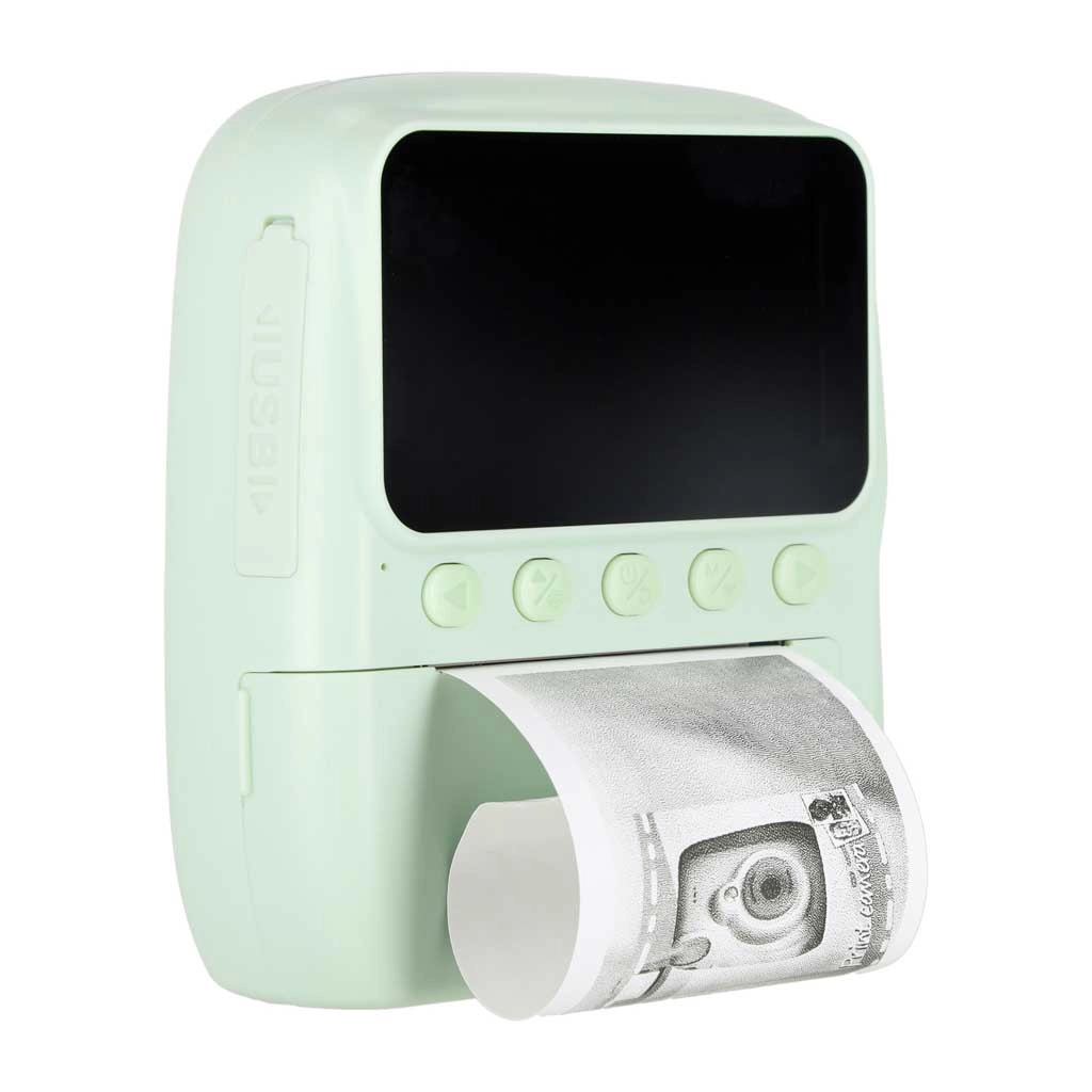 Ce compact instantané vert pour enfants combine photo, vidéo et impression rapide sur papier thermique. Grâce à l’écran IPS 3,0" clair, aux commandes par boutons et au boîtier robuste en ABS et silicone, il est idéal pour les petits photographes dès 3 ans. La créativité est stimulée par des filtres ludiques, des effets type fisheye et la possibilité de colorier les tirages avec les feutres fournis.