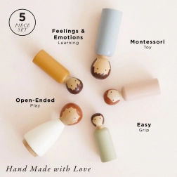 L’ensemble de cinq personnages est compatible avec les maisons de poupée et autres accessoires, ce qui permet de l’intégrer facilement à un univers de jeu plus vaste. C’est un jouet durable, élégant et écologique qui favorise la motricité fine, l’interaction sociale et la communication.