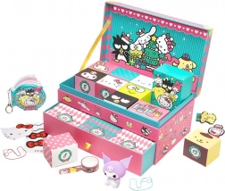 À l’intérieur, un assortiment varié de petits jouets et d’accessoires thématiques – porte-clés, autocollants, décorations en papier, mini figurines et autres mignonneries dans l’esprit HELLO KITTY. Un emballage soigné en boîtes individuelles renforce la joie de la découverte quotidienne. Le tiroir coulissant inférieur offre en plus de la place pour d’autres trésors.