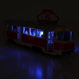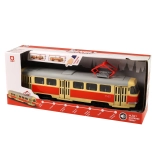 Un tramway rouge et blanc annonce les stations en langue tchèque, afin que tous les passagers sachent quand descendre. Le tramway annonce 7 arrêts : Gare principale, Parc aquatique, Jardin zoologique, Stade sportif, École primaire et maternelle, Théâtre, Centre commercial. Les portes s’ouvrent manuellement et, comme détail bonus réussi, l’intérieur s’illumine en bleu après leur ouverture. Chaque fois que les portes s’ouvrent, une annonce retentit et les phares avant clignotent même lors de la fermeture. Tramway spacieux en plastique et fonctionnant en roue libre. Alors, à bord, le voyage plein de fun commence !