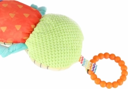 Le jouet est léger, agréable au toucher et idéal pour jouer à la maison, dans le lit ou sur le ventre. Grâce à l’anneau de dentition en silicone, il soulage les gencives, tandis que la construction segmentée soutient la coordination œil-main et améliore la prise en main.