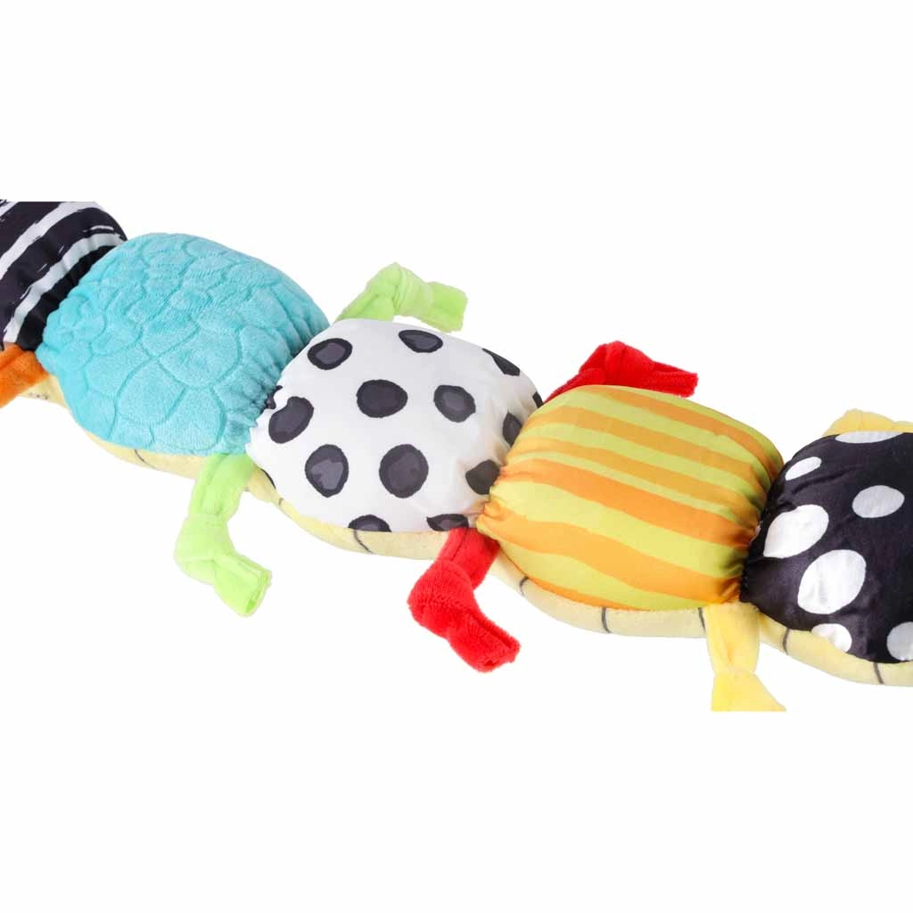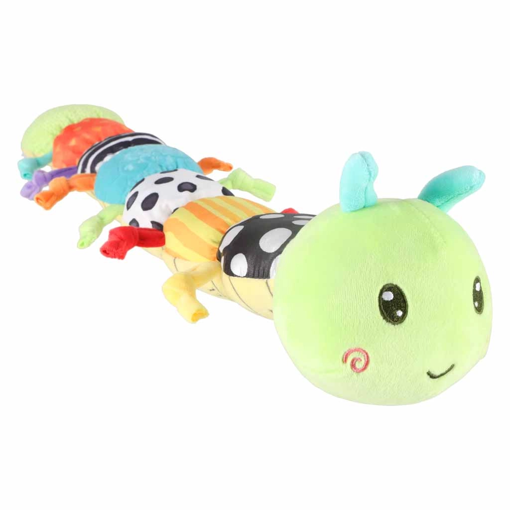 Cette chenille en peluche multifonction est conçue pour un jeu sûr et stimulant dès les premiers jours. Des matériaux doux, des motifs contrastés et des sons intégrés invitent les enfants à explorer, presser et câliner. Les mélodies intégrées dans la tête captivent et apaisent, tandis que les éléments bruissants et à hochet stimulent l’ouïe et le toucher.
