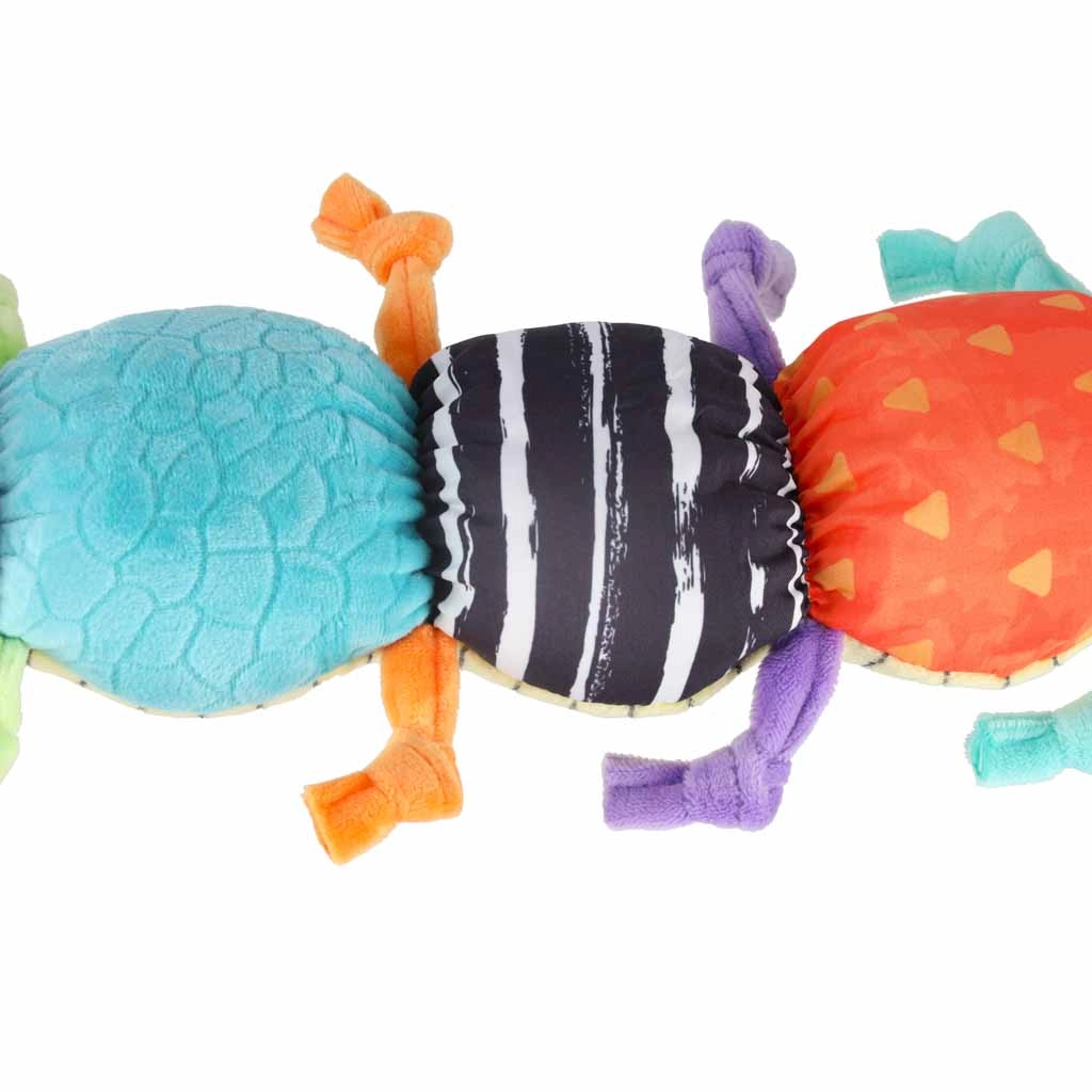 Adorable chenille en peluche interactive pour bébés, offrant une riche stimulation sensorielle et un apaisement en douceur. Elle intègre des mélodies, un pouet, des parties bruissantes, un hochets et un anneau de dentition souple pour soulager lors des poussées dentaires. Grâce aux différentes textures et couleurs, elle favorise le développement des sens et de la motricité fine dès la naissance.