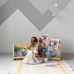 Le design élégant et épuré de l’étagère à livres BusyKids s’intègre parfaitement dans tout intérieur. Les étagères frontales, basses et facilement accessibles permettent aux enfants de choisir les livres selon leur couverture, ce qui soutient naturellement leur intérêt pour la lecture et développe leur autonomie. L’espace de rangement arrière offre une place supplémentaire pour les livres plus grands ou les jouets préférés.