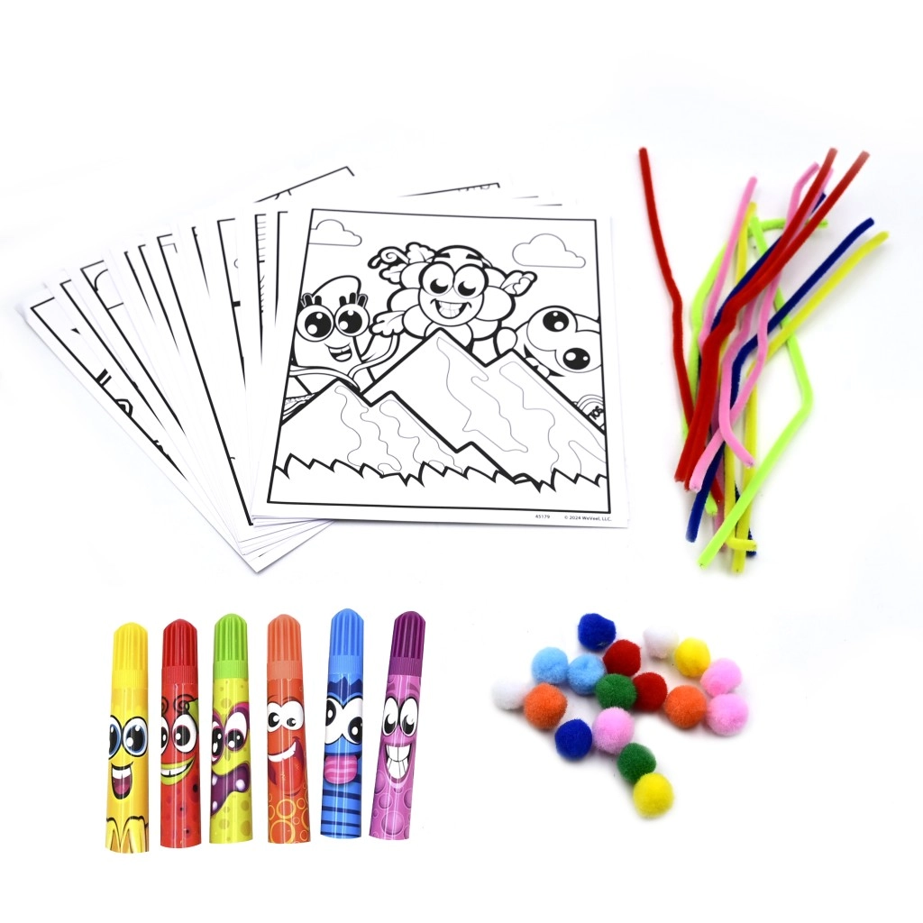 Les enfants peuvent dessiner classiquement aux feutres, colorier par numéros, révéler des motifs colorés en grattant ou compléter leurs œuvres avec des autocollants, des pompons et des fils chenille. Toutes les fournitures sont non toxiques et sûres pour les enfants dès 3 ans.