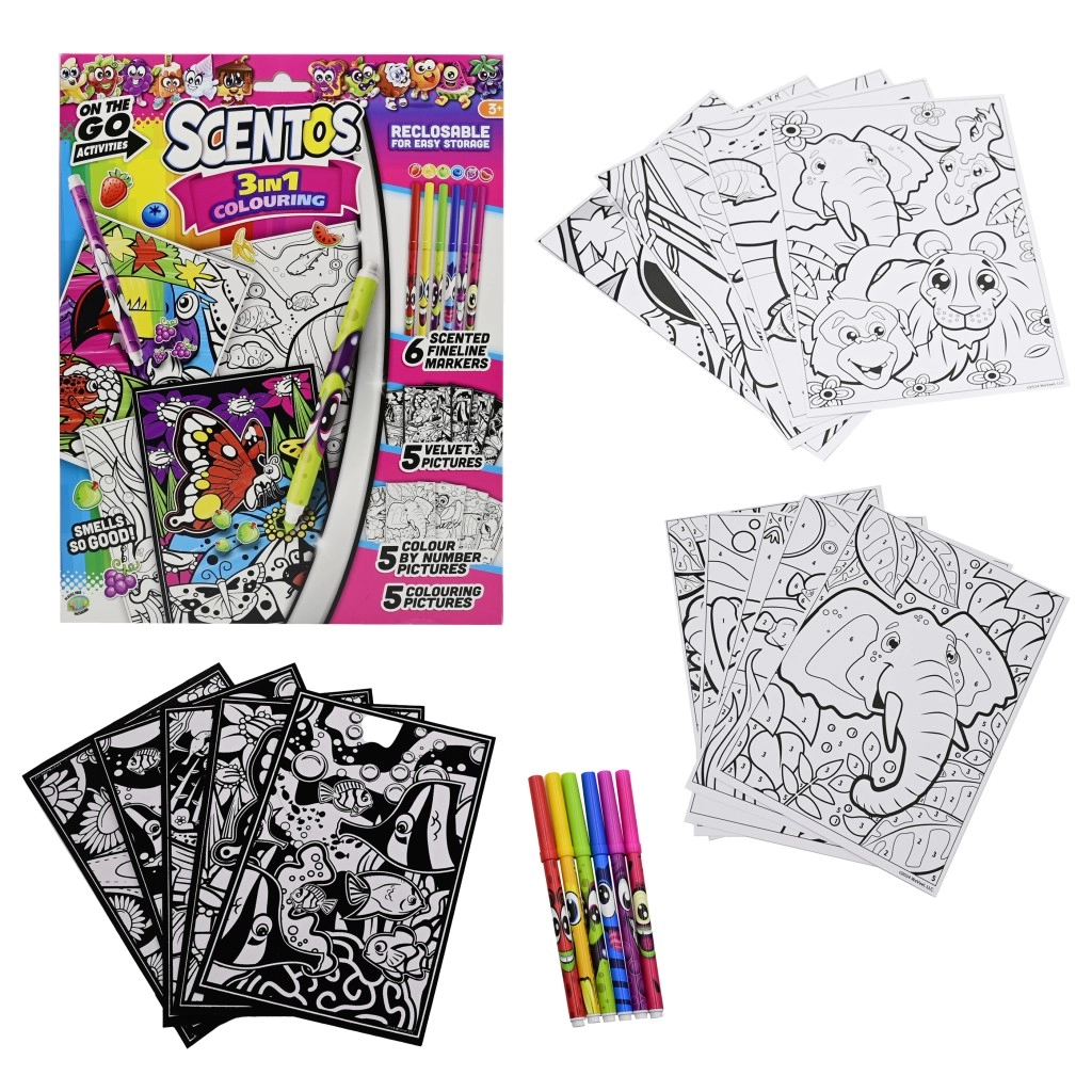 Ce coffret créatif de voyage parfumé SCENTOS offre aux enfants un univers de création haut en couleur dans un format compact. Il contient des coloriages aux motifs animaliers, des feutres parfumés, des crayons de couleur, des cartes de scratch art et des décorations pour des effets 3D. Idéal en voiture, en train ou en vacances – tout est regroupé et prêt à l’emploi.