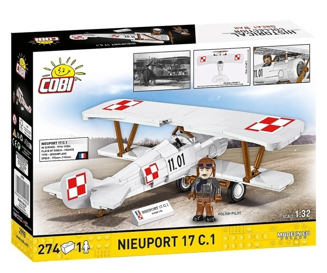 Construisez le légendaire biplan de chasse français Nieuport 17 C.1 avec marquages polonais. La maquette composée de 274 pièces propose des impressions authentiques sans autocollants, une reproduction détaillée du sesquiplan, une minifigurine de pilote et un support avec plaque. Un excellent choix pour collectionneurs et jeunes maquettistes (9+), alliant divertissement, histoire et apprentissage.