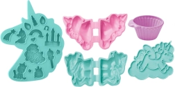 Des moules, un outil en forme d’étoile, un gobelet et une figurine de licorne permettent de presser, découper et décorer – il suffit d’ouvrir et de jouer.