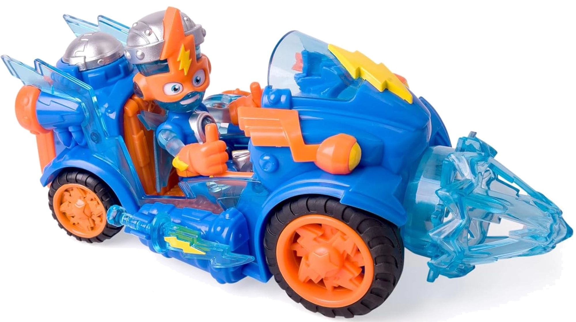 L’élément phare de la machine est une grande foreuse pivotante qui tourne pendant la conduite et donne au véhicule un caractère combatif. Les enfants peuvent facilement imaginer des missions palpitantes, surmonter des obstacles et enrichir leur collection SuperThings.