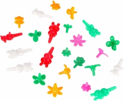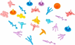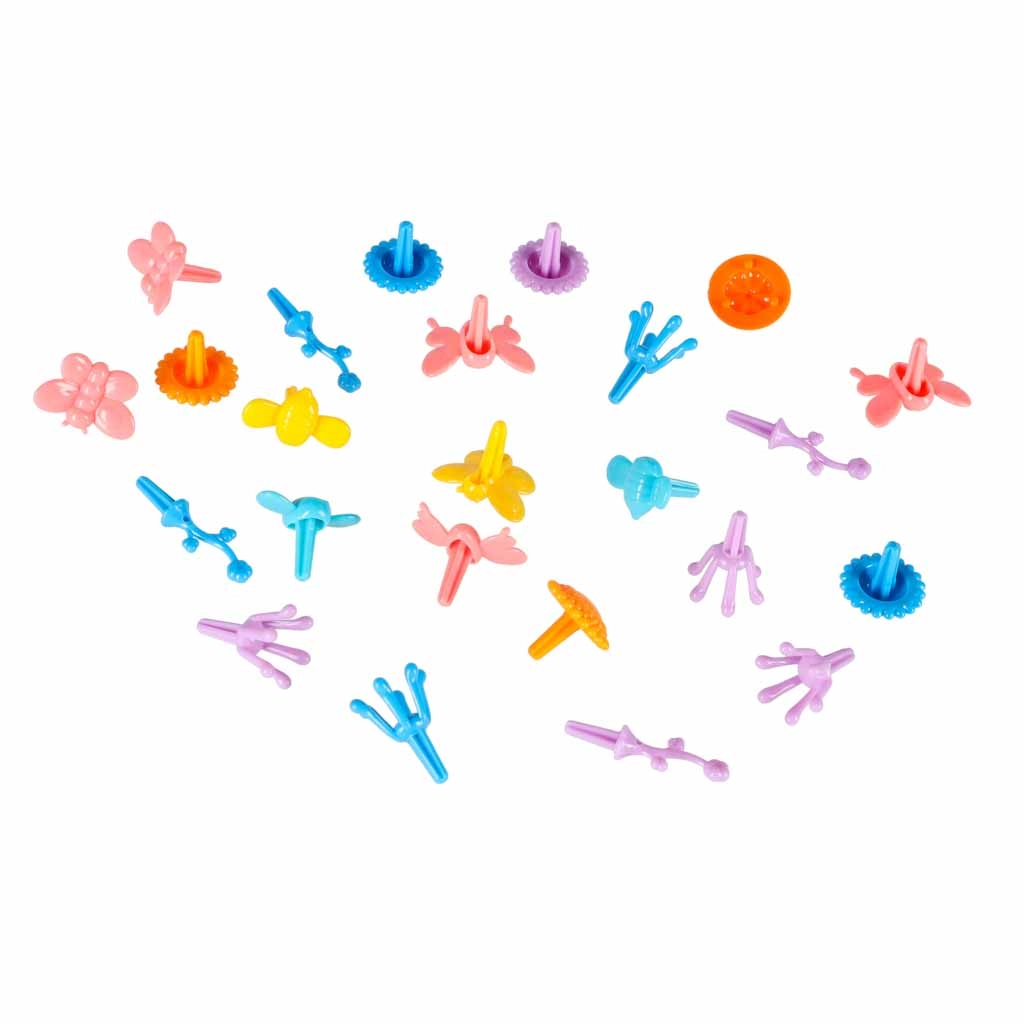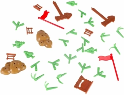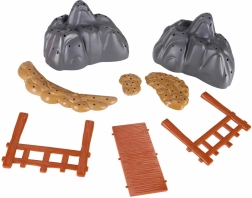 - 1× petite voiture lumineuse avec figurine, 13× segment de piste, 15× connecteur inférieur, pont rabattable et barrière, rochers (2 pcs), remblais (5 pcs), barrières (5 pcs), drapeaux (2 pcs), panneaux directionnels (2 pcs), fleurs avec tiges (84 pcs), petits arbres (2 pcs), papillons (9 pcs), petits animaux (9 pcs), notice