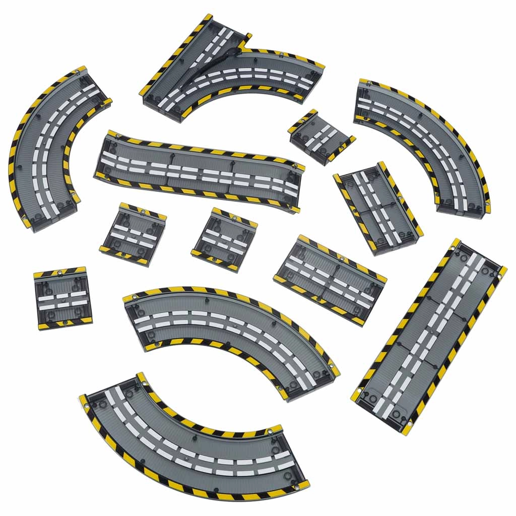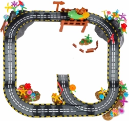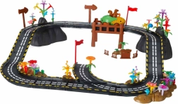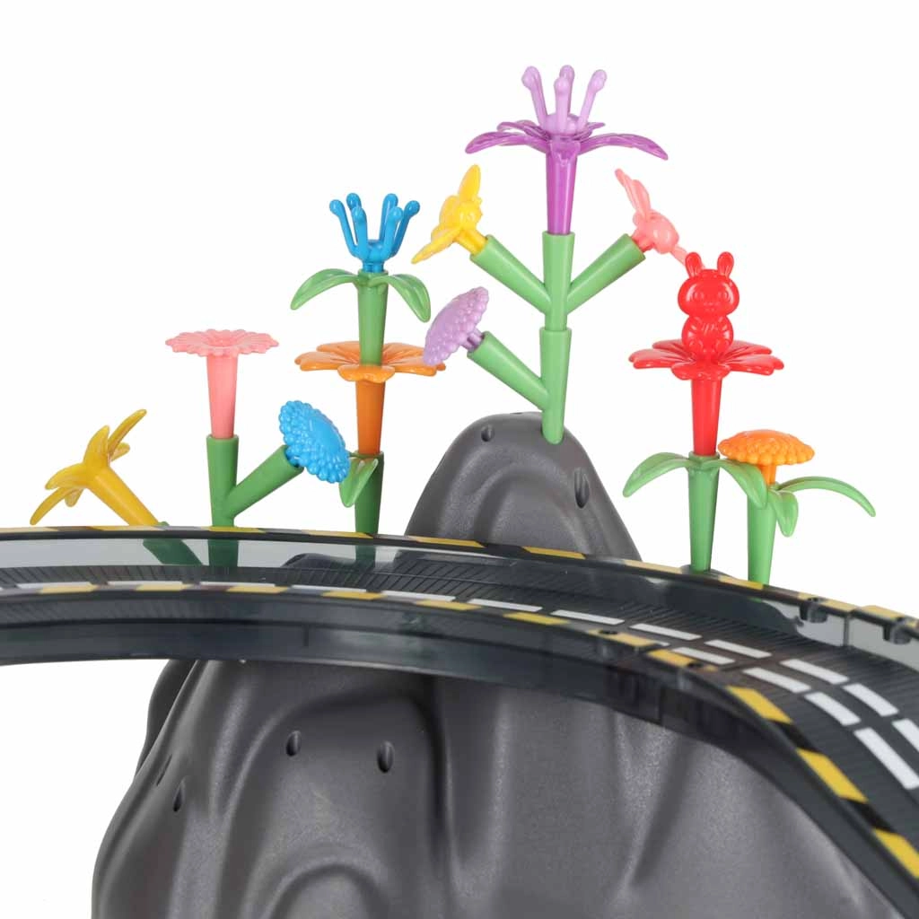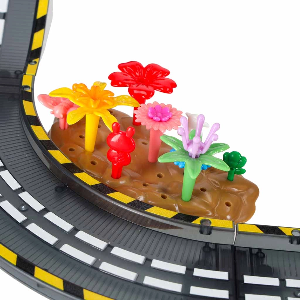 Il s’agit d’un jouet éducatif qui développe naturellement la créativité, la pensée logique et la capacité à planifier. Chaque nouvelle configuration raconte une autre histoire — les enfants peuvent ajouter fleurs, arbres, barrières, rochers et drapeaux pour créer un environnement original pour les courses.