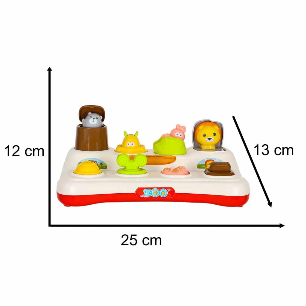 Découvrez la joie d’apprendre avec ce jouet interactif pop-up pour enfants dès 18 mois. L’enfant appuie, fait glisser ou tourne les commandes, et des animaux colorés surgissent des fenêtres. Le jouet favorise la motricité fine, la pensée logique et la compréhension du principe cause–effet. Grâce aux effets lumineux et aux mélodies, le jeu est encore plus captivant, avec la possibilité de couper complètement le son.
