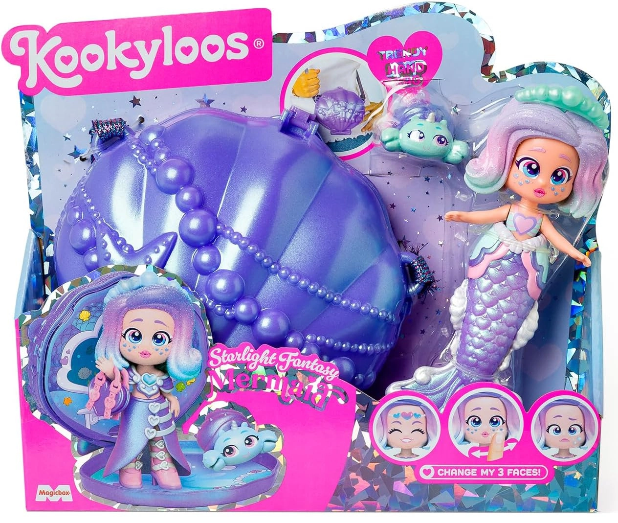 Découvrez le monde magique avec la figurine KookyLoos Starlight Fantasy – une adorable sirène à queue scintillante, tenue interchangeable et sac à main en forme de coquillage stylé. Amusement 2 en 1 : la queue amovible transforme la sirène en personnage prêt à jouer sur la terre ferme. Inclus également un animal marin unique et des accessoires marins thématiques pour des histoires créatives.