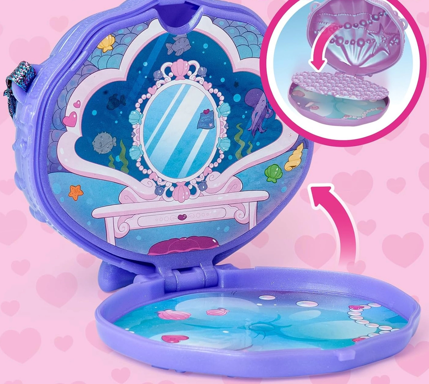 - figurine de sirène, queue amovible, tenue avec chaussures, sac à main en forme de coquillage, petit animal marin, accessoires thématiques