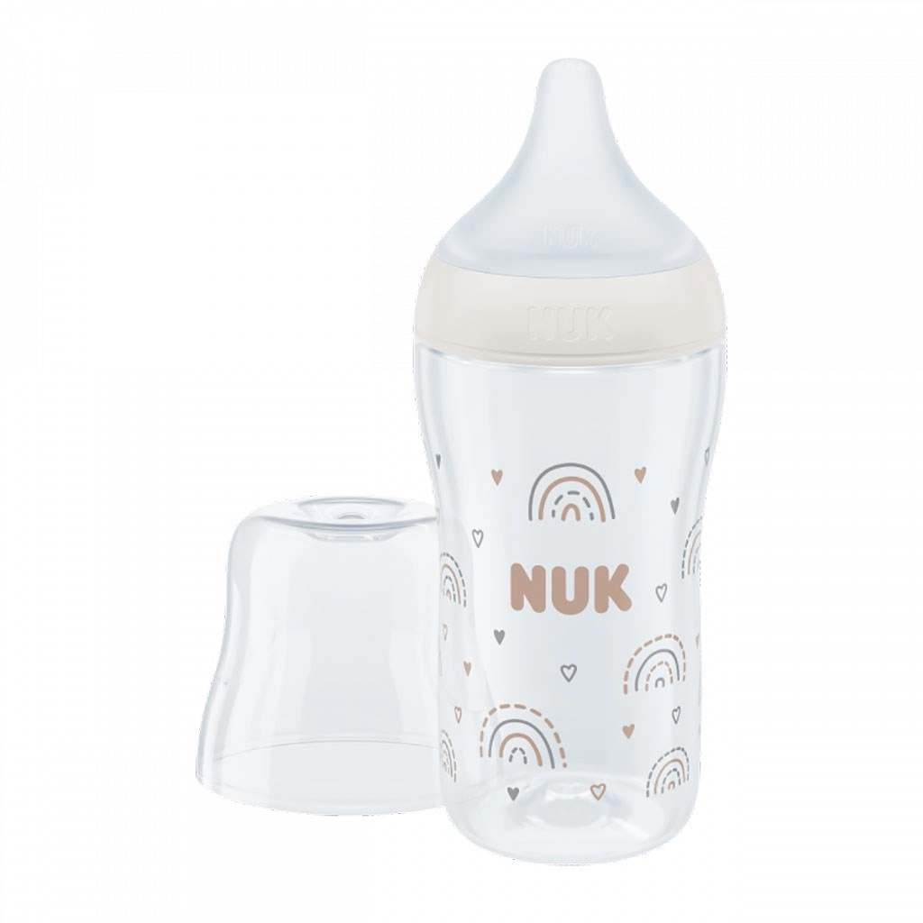 Le biberon en verre NUK Perfect Match reproduit la sensation naturelle de l’allaitement – il possède une forme orthodontique spéciale inspirée du mamelon maternel, laisse suffisamment d’espace pour le mouvement de la langue et des mâchoires et offre un large appui pour les lèvres rappelant la peau de la maman. Grâce au Anti Colic Air System amélioré, le flux de lait est naturel et régulier, pour que bébé boive détendu sans avaler inutilement d’air.