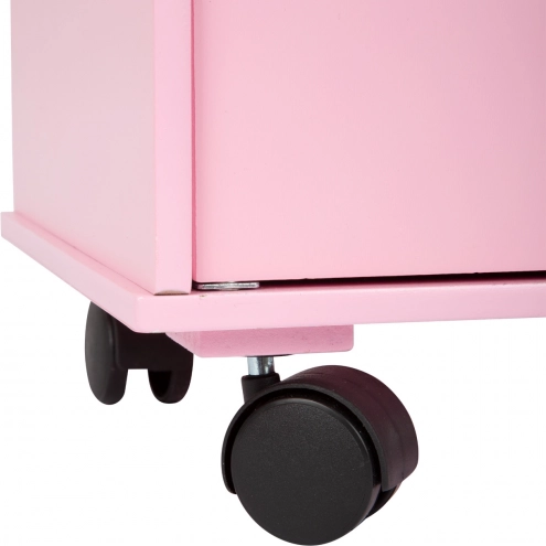 Les roulettes pivotantes permettent de déplacer l’armoire en douceur et en toute sécurité dans la chambre d’enfant ou la salle de jeux.