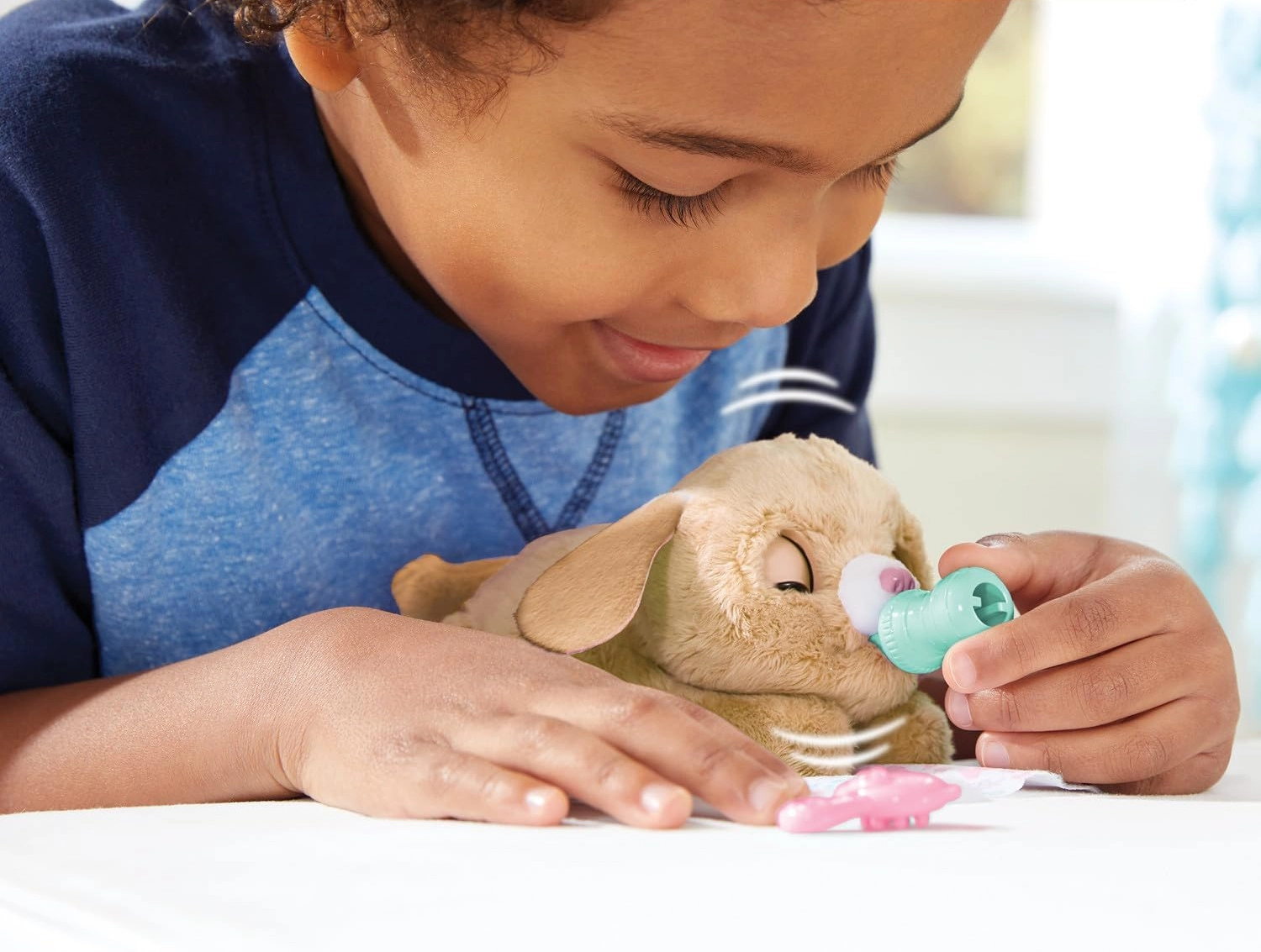 - Réactions interactives – le toucher, le nourrir et le brosser déclenchent des sons et des mimiques.