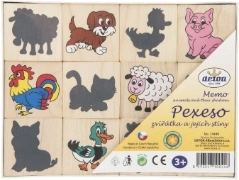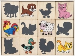 Pexeso avec des cartes en bois imprimées avec des animaux et leurs ombres. Aide à développer l'imagination et la mémoire de vos enfants de manière amusante.