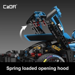 La voiture possède des parties mobiles (par ex. section arrière/capot), des éléments de direction fonctionnels et est prête pour une motorisation ultérieure – après ajout de pièces compatibles, elle peut avancer/reculer et tourner. Emballée dans une boîte élégante, c’est un cadeau parfait pour les fans de kits techniques et de sport automobile.