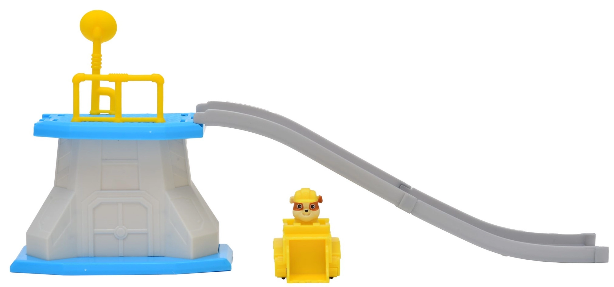 Partez en mission de sauvetage avec la mini tour inspirée de la série préférée PAW PATROL. La plateforme de départ avec garde-corps de sécurité et la longue rampe incurvée permettent au véhicule de Rubble une descente rapide et pleine d’action. Le set encourage le jeu créatif, la narration d’histoires et le développement de la motricité fine.