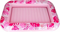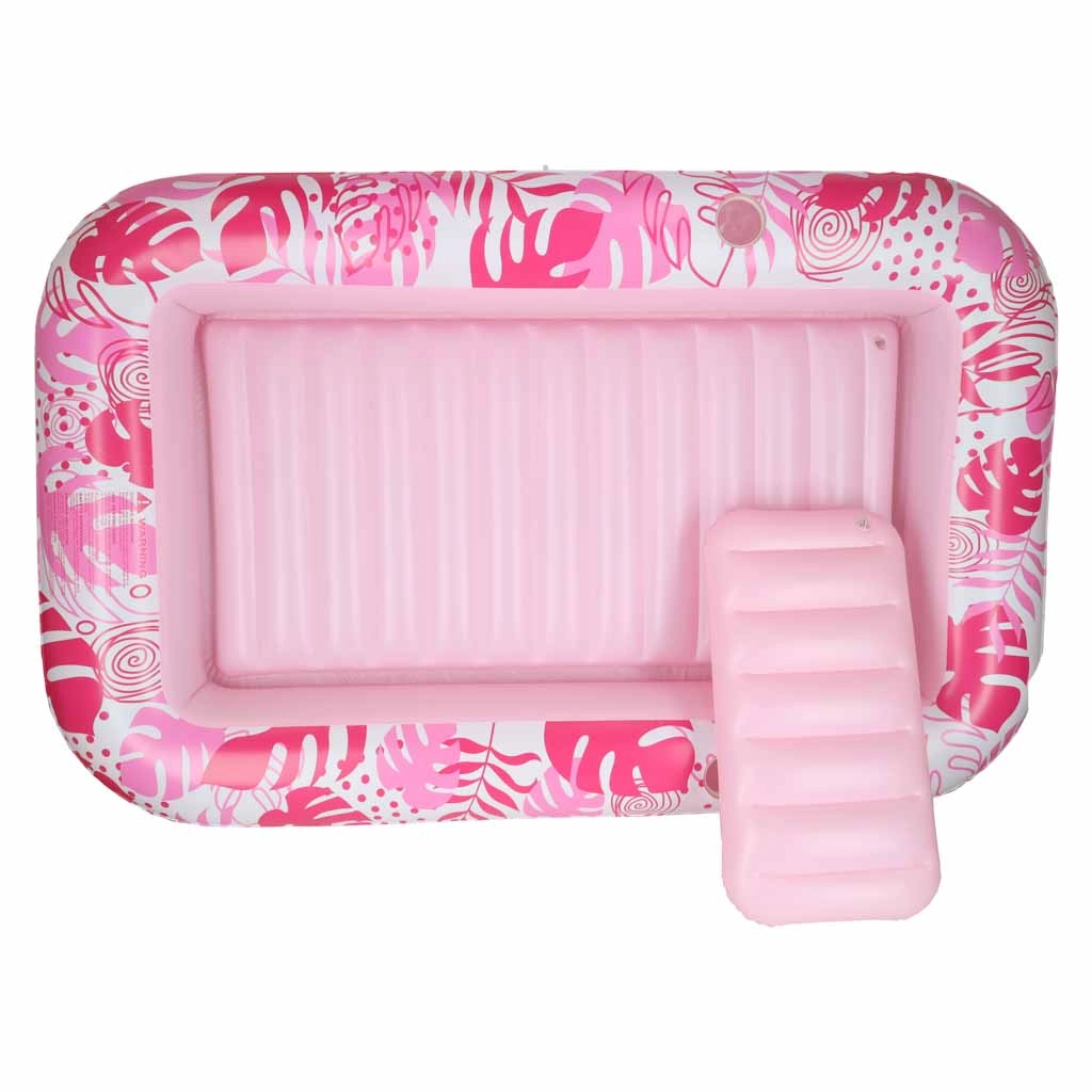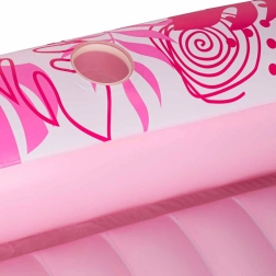 Deux porte-gobelets intégrés gardent vos rafraîchissements à portée de main, tandis que sa maniabilité et portabilité en font un compagnon fiable pour toutes vos sorties estivales. Le design rose et blanc aux motifs tropicaux ajoute du style à votre détente.