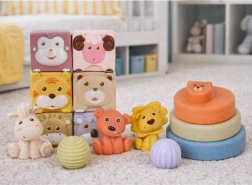 Comprend des cubes carrés avec motifs d’animaux, des éléments ronds pour construire une tour, des figurines à presser et des balles sensorielles. Les jouets conviennent au jeu à sec et au bain, sèchent rapidement et se nettoient facilement – parfaits pour une utilisation quotidienne à la maison comme en déplacement.