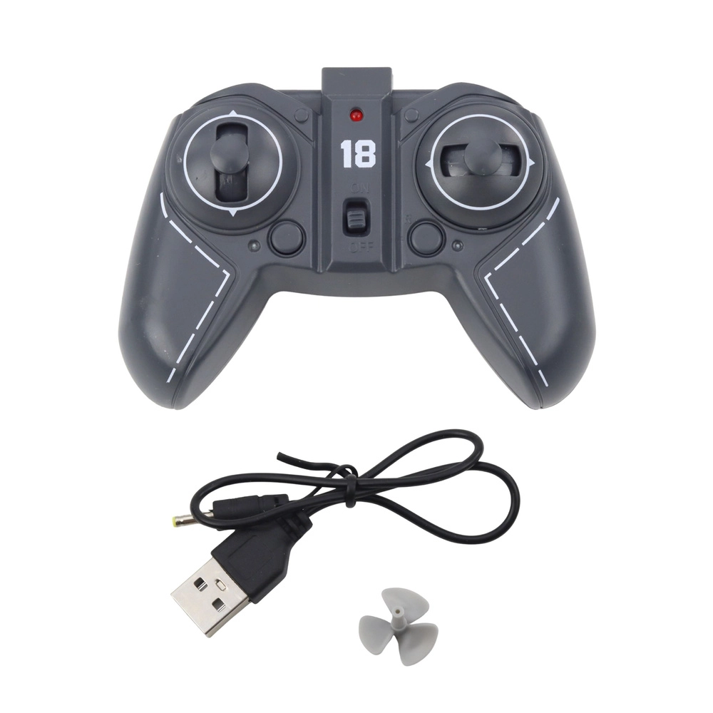 Manœuvres précises avant/arrière, gauche/droite et rotation sur place. Charge USB et hélice de rechange incluses pour une utilisation pratique.