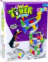 Construisez la tour la plus haute possible avec des anneaux blancs et des pingouins colorés et jouez la sécurité – ou prenez des risques ! La couleur du dé détermine quelle pièce vous placez. Chaque coup fait monter la tension et met à l’épreuve une main stable, la concentration et la motricité fine. Perd celui à qui la tour s’effondre.