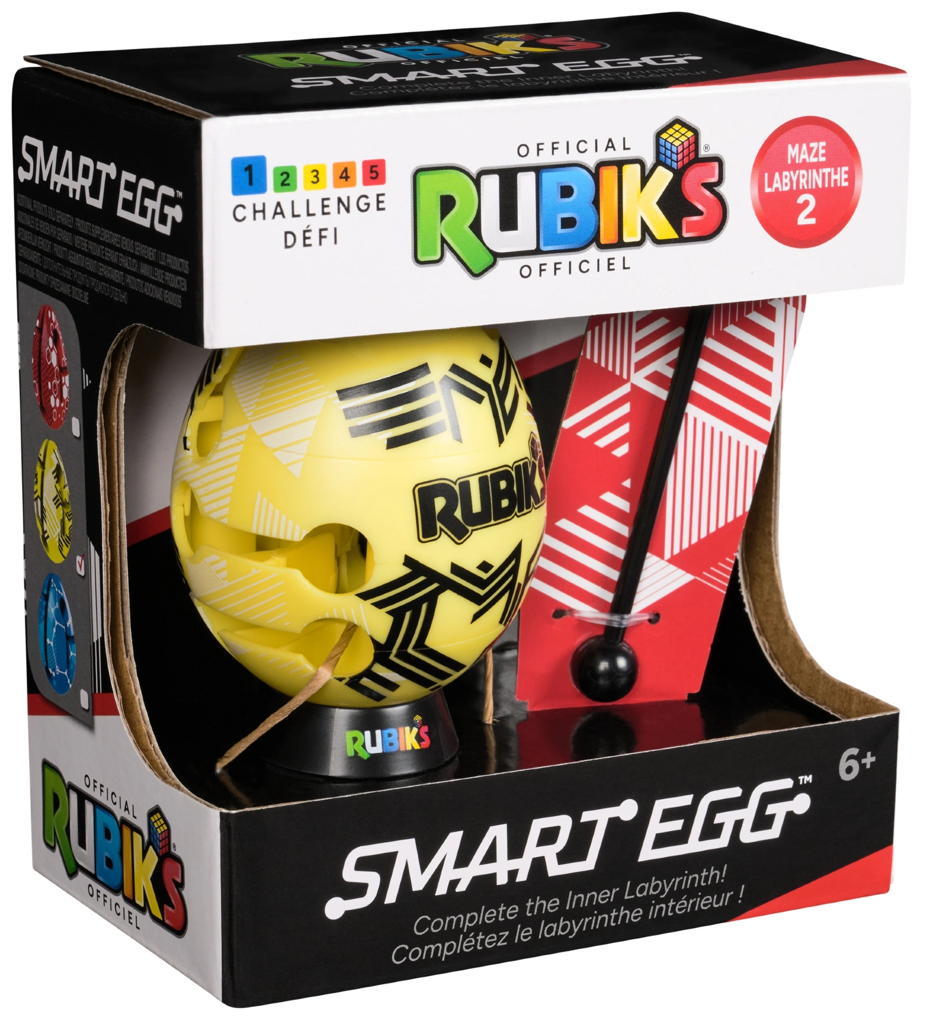 Le Rubik’s Smart Egg jaune est un casse-tête de poche avec un labyrinthe original que vous parcourez à l’aide de la tige fournie, de l’entrée jusqu’à la sortie. Chaque mouvement exige des rotations et des glissements précis, offrant des dizaines de combinaisons et des défis toujours renouvelés.
