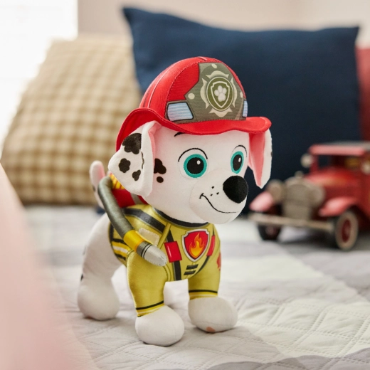 Découvrez le mignon dalmatien Marshall dans sa tenue de pompier emblématique. La peluche de 25 cm se tient sur ses quatre pattes, est agréablement douce, légère pour les petites mains et idéale pour les câlins quotidiens comme pour les missions de sauvetage héroïques.
