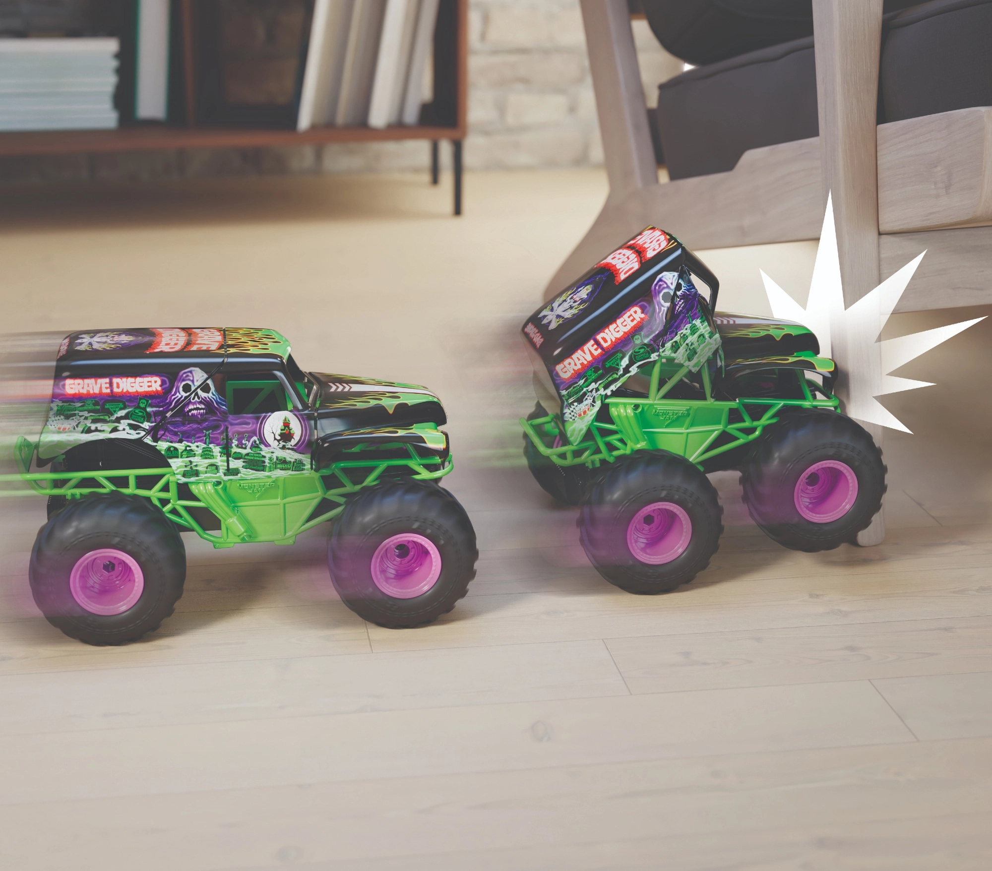 L’icône légendaire de MONSTER JAM rejoint votre collection : GRAVE DIGGER avec son graphisme noir et vert distinctif, ses pneus géants et son châssis surélevé. L’échelle 1:15 offre un excellent équilibre entre taille et maniabilité, tandis que les bandes de roulement en caoutchouc garantissent de la traction sur asphalte, moquette et surfaces plus rugueuses.