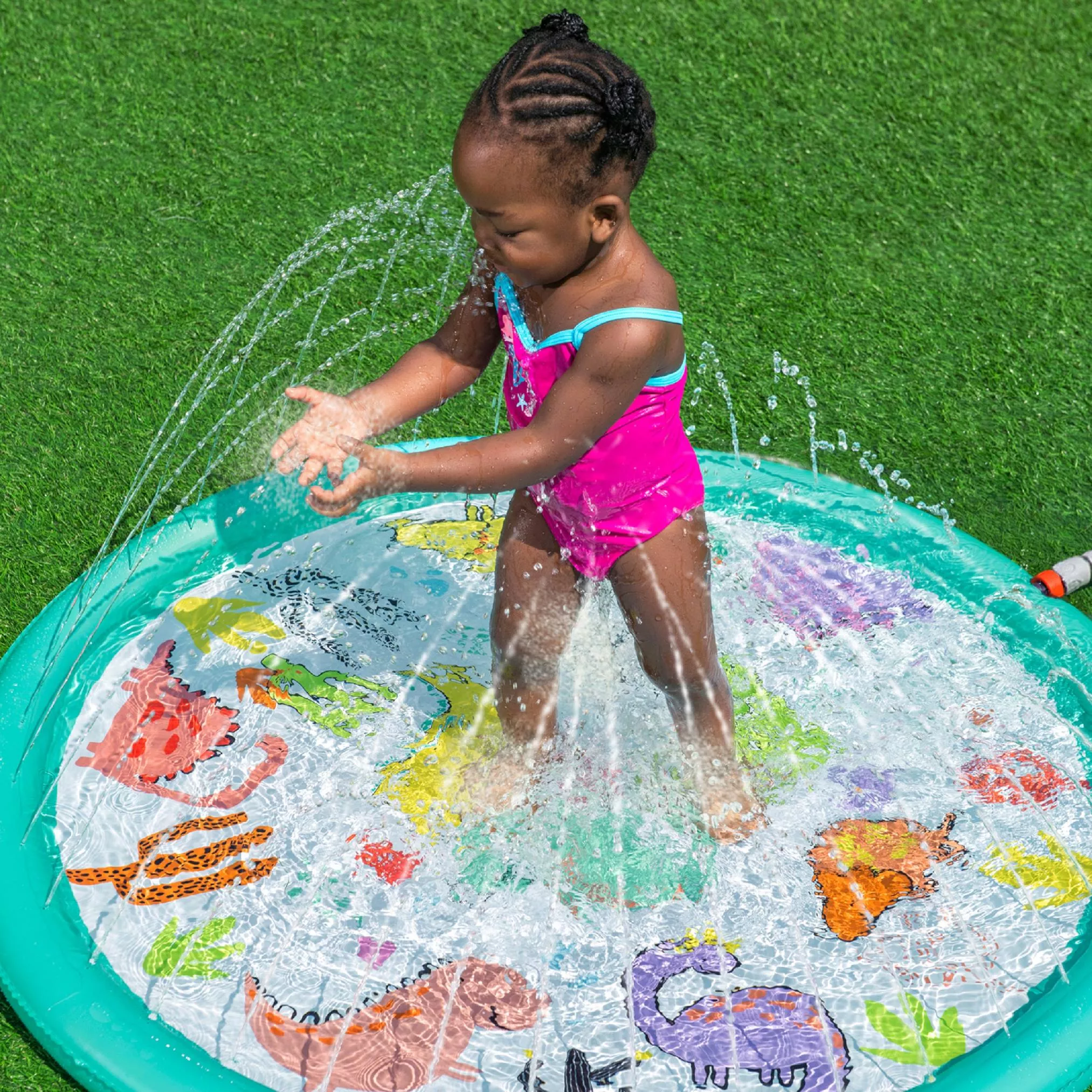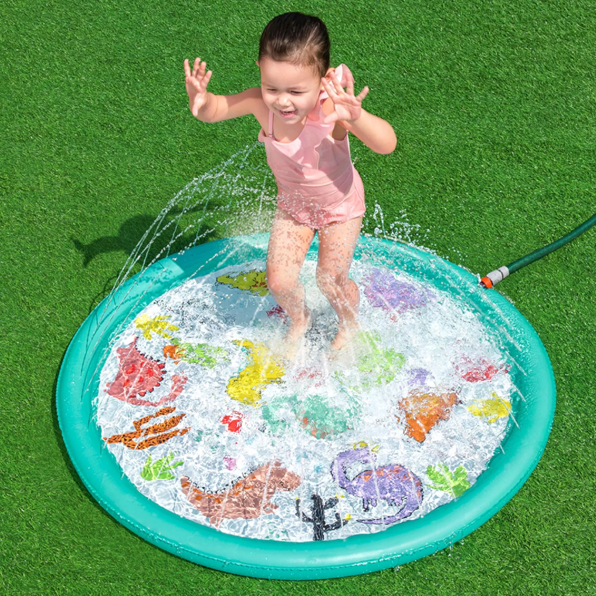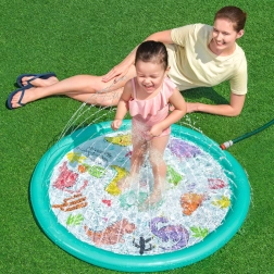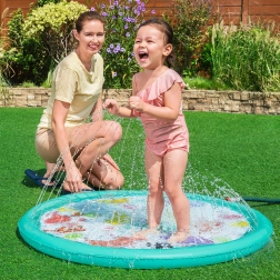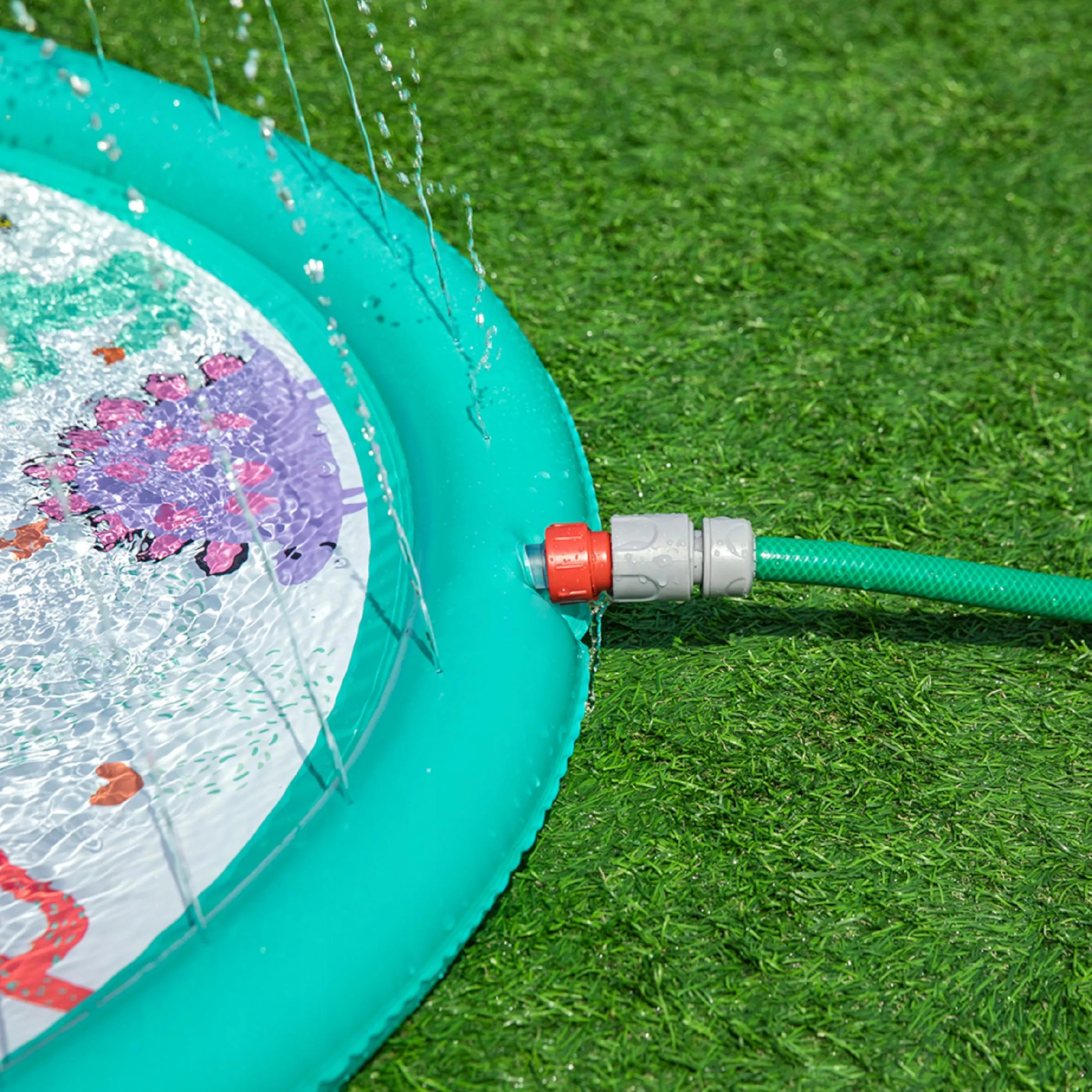 Ce tapis arroseur gonflable apporte aux enfants joie, rafraîchissement et jeux extérieurs actifs pendant les journées chaudes. Il suffit de le raccorder au tuyau, d’ajuster la pression de l’eau et les buses périphériques créent une douce fontaine d’eau à hauteur de jet réglable. La zone peu profonde est idéale pour jouer et s’éclabousser en toute sécurité.