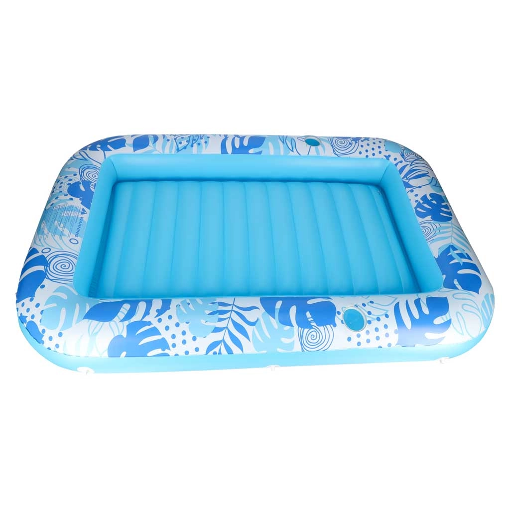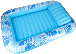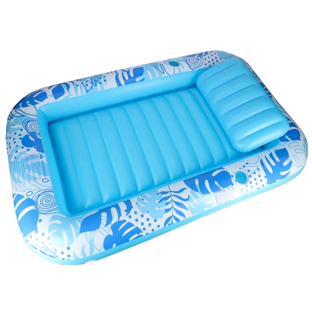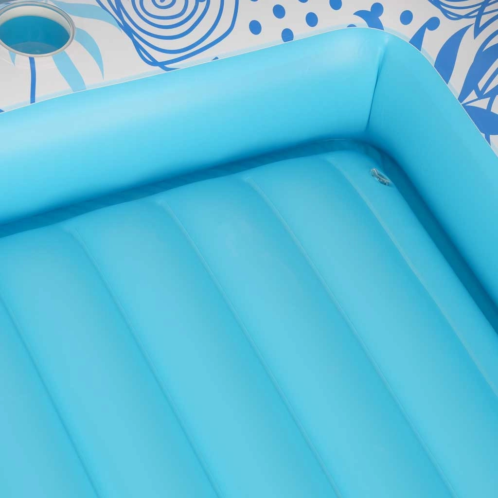 Créez votre zone de détente privée à la surface de l’eau. Ce matelas gonflable avec oreiller amovible au design bleu et blanc allie confort, stabilité et style. Il se gonfle rapidement à l’aide d’un compresseur ou d’une pompe électrique, et grâce à ses chambres à air multiples, il conserve sa forme même lors d’une utilisation prolongée.