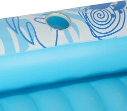 Des détails bien pensés, comme 2 porte-gobelets intégrés et une corde périphérique pour se rapprocher facilement du bord, augmentent la sécurité et le confort sur l’eau. Le PVC de 0,25 mm d’épaisseur assure une résistance à l’usage estival, tandis que la surface de couchage à cannelures souples offre un soutien agréable.
