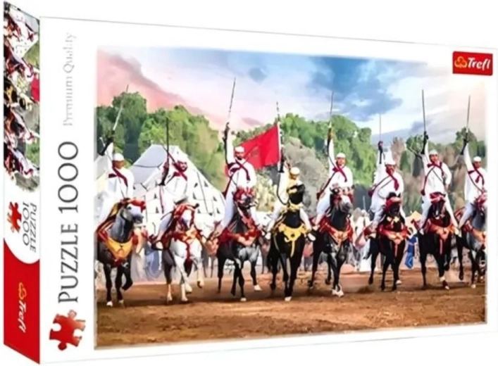 Profitez d’heures de détente et de concentration avec le puzzle TREFL de 1000 pièces. Le motif Attaque des cavaliers séduit par sa dynamique et la finesse de ses détails. Une fois assemblé, il forme une image d’environ 68,3 × 48 cm, idéale à encadrer ou comme décoration d’intérieur.