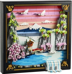 Plongez dans un univers de calme et d’esthétique avec ce set artistique pour adultes, rendant hommage au courant ukiyo-e et à la beauté du printemps japonais. À partir de 1 892 pièces, composez une scène détaillée avec le mont Fuji, une maison de thé, un pont, une cascade, des grues de Mandchourie en vol, un érable « Sango-Kaku » et des pins parasols japonais. La cascade déborde astucieusement du bord du cadre : suspendue, l’eau semble tomber par-dessus le cadre ; posée, vous l’ajustez pour qu’elle s’écoule sur la base.
