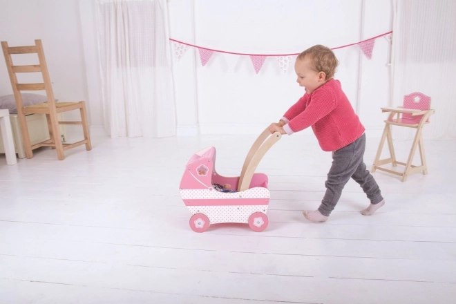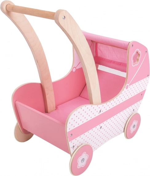 Cette belle poussette rose pour enfants est dotée d'un toit en tissu et de détails sculptés décoratifs qui raviront toutes les petites filles. Le jouet aide à développer la créativité et les compétences sociales des enfants.