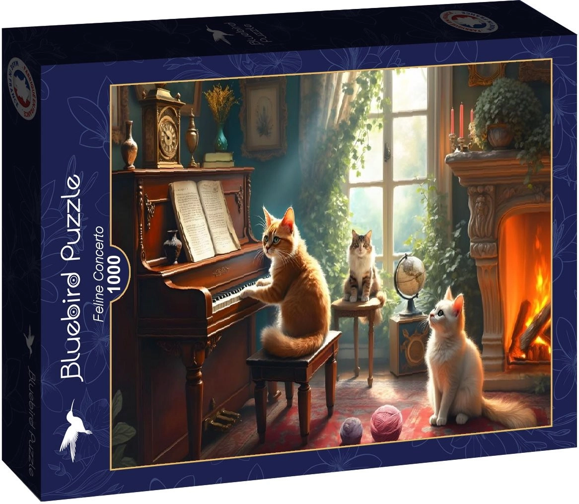 Profitez de la détente et du plaisir avec le puzzle Bluebird de qualité – Concert de chats en 1000 pièces. Idéal pour les amoureux des chats et des puzzles, il offre une impression précise, des découpes exactes et une superbe illustration parfaite pour l’encadrement.