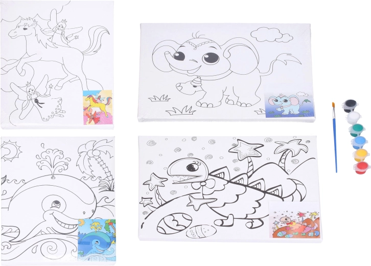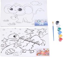 Découvrez un kit créatif pour petits et grands artistes : une toile de peinture avec modèle de 30 × 24 cm, accompagnée de peintures et d’un pinceau. Idéal pour les débutants et les enfants – il suffit de suivre le modèle pour créer votre propre tableau. Motifs au choix : dinosaure, baleine, éléphant et cheval.