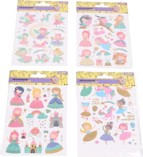 Des tatouages temporaires au format 10,5 × 15 cm qui raviront toutes les petites coquettes. Ils proposent des motifs pour filles en 4 variantes, s’appliquent facilement sur la peau et s’enlèvent tout aussi simplement. Un excellent choix pour les fêtes d’enfants, les carnavals et le divertissement au quotidien.