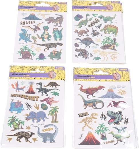 Amusants tatouages temporaires à motifs de dinosaures au format 10,5 × 15 cm, pour le plaisir des enfants comme des adultes. Application facile, couleurs vives et 4 variantes de motifs pour tous les goûts.