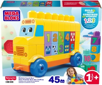 Découvrez l’apprentissage par le jeu avec cet autobus coloré de MEGA BLOKS, qui apprend aux enfants à assembler et à compter de 1 à 10. Le set de construction avec 45 pièces, incluant un châssis à roulettes, une pancarte d’arrêt escamotable et de grosses briques avec chiffres et illustrations, développe la motricité fine, la logique et les premières notions de mathématiques. Idéal pour les enfants à partir de 18 mois.