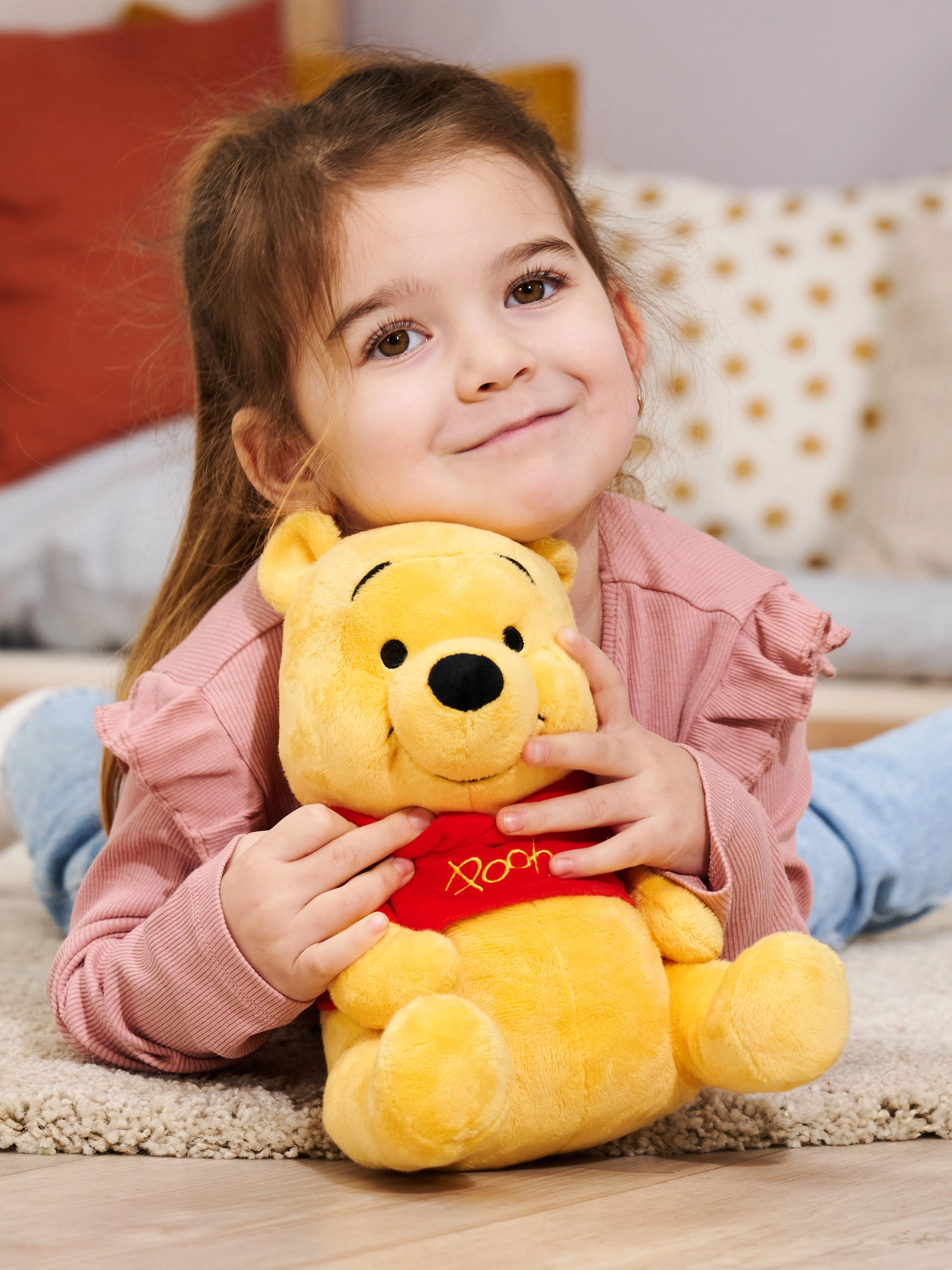 - Finition détaillée – yeux et sourire brodés, chemise rouge iconique avec l’inscription « Pooh ».