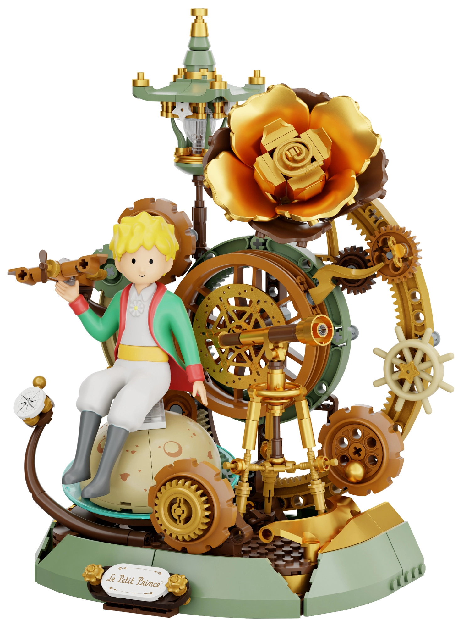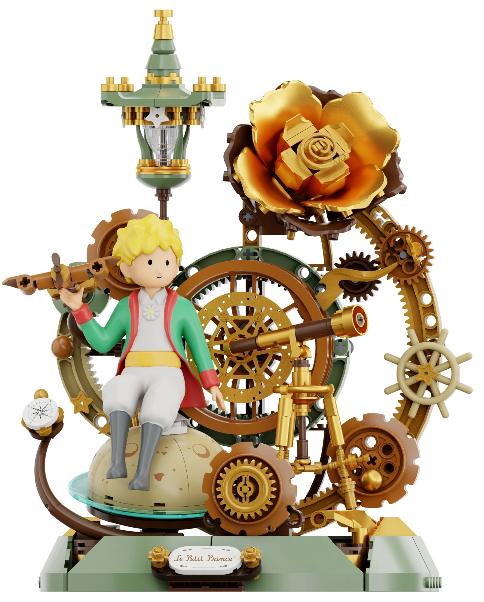 Imprégnez-vous de l’univers poétique du Petit Prince et assemblez une scène saisissante avec des éléments iconiques – de la rose dorée au compas, en passant par de délicats engrenages stylisés et une lanterne. Le modèle séduit par ses détails soignés et sa structure stable, qui se met idéalement en valeur sur une étagère ou dans une vitrine.