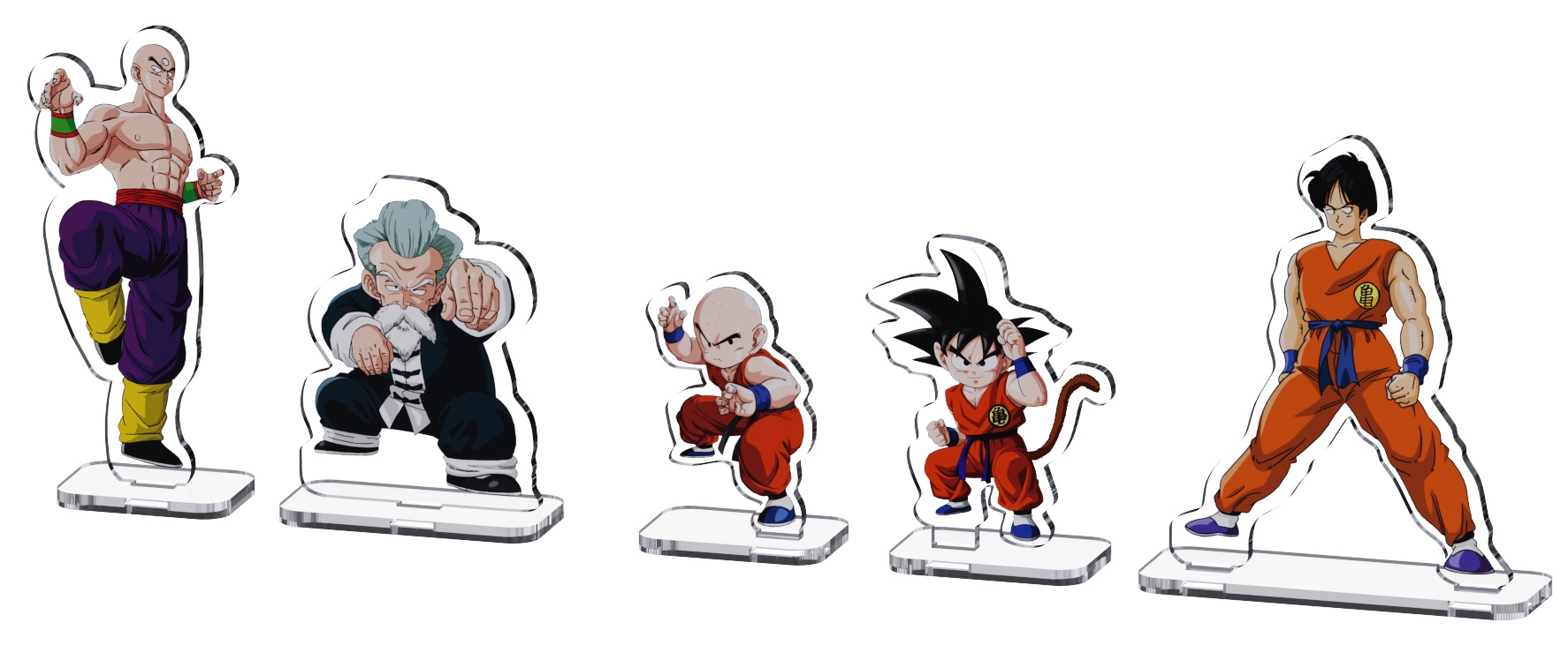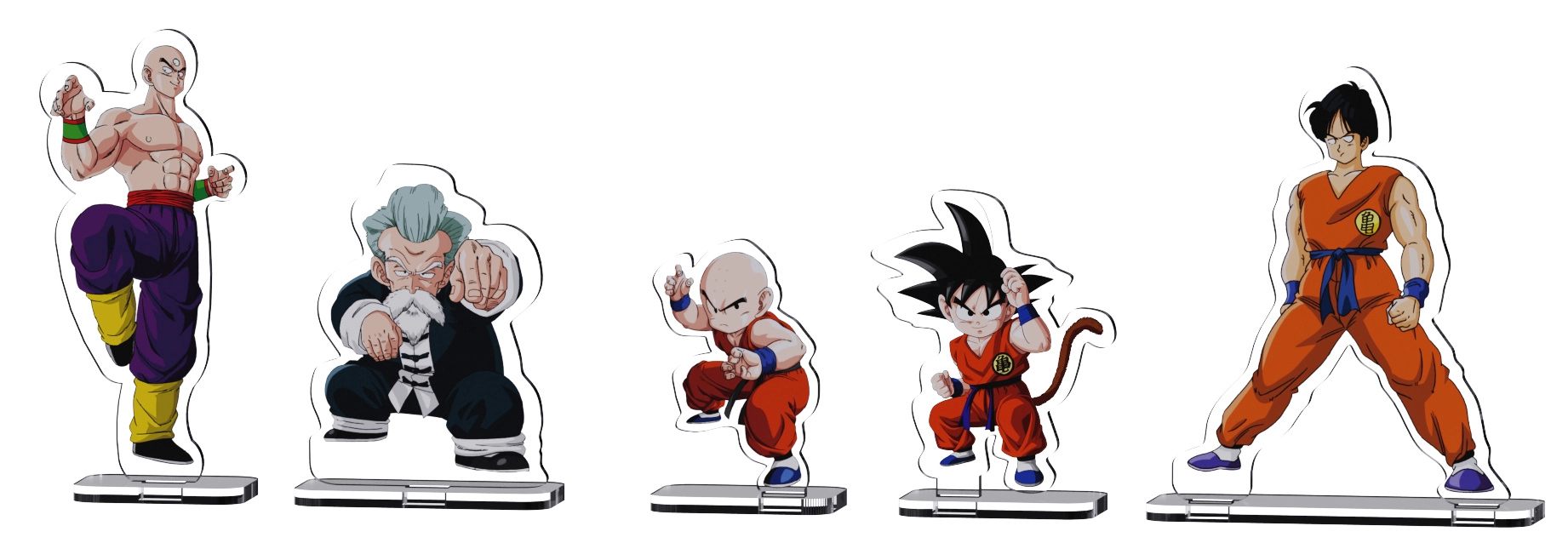 - 5 figurines acryliques : Goku, Jackie Chun, Yamcha, Krillin, Tenshinhan pour des mises en scène dynamiques.