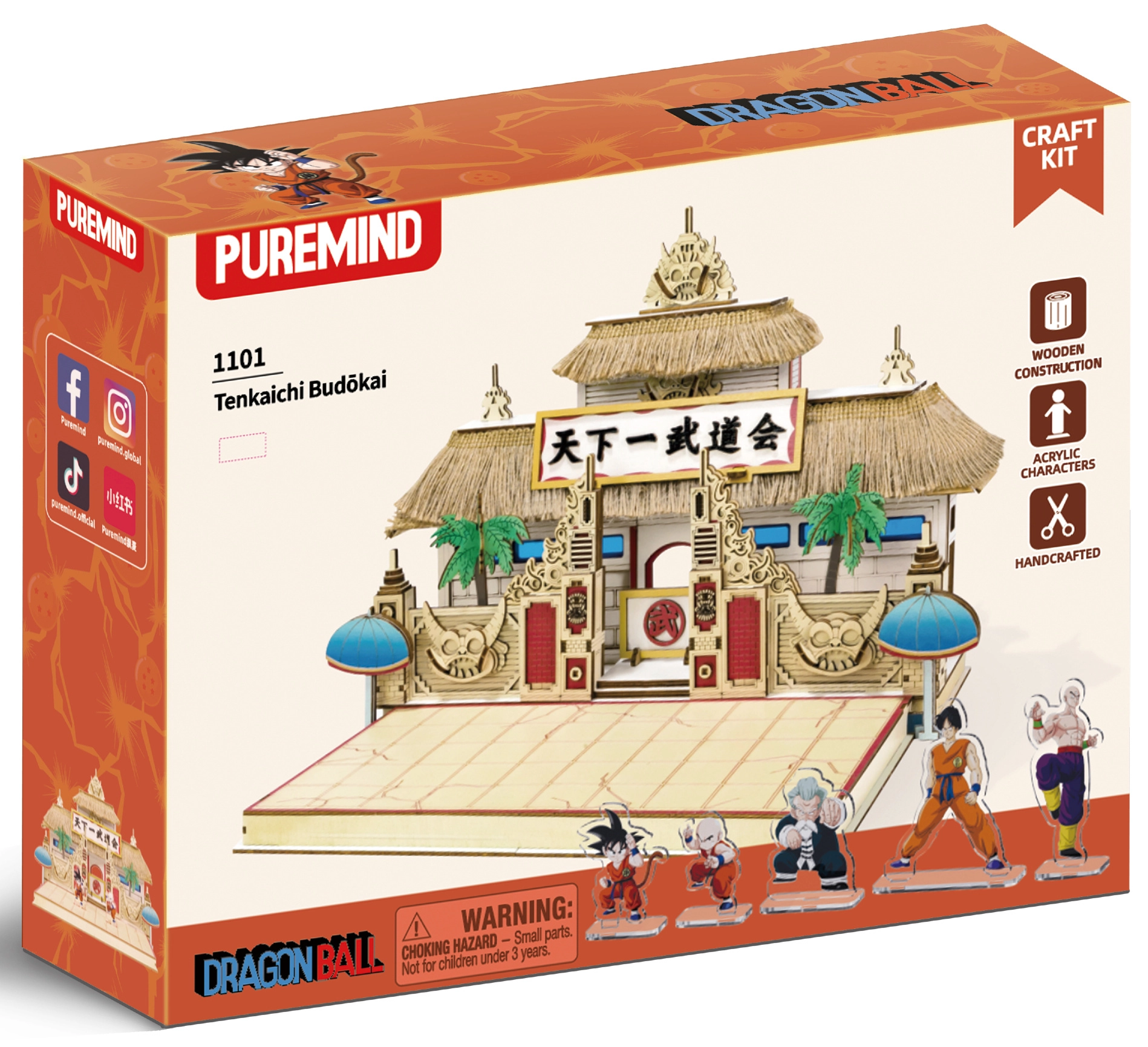 Construisez l’arène iconique du Tenkaichi Budokai de l’univers DRAGON BALL sous forme de modèle 3D en bois détaillé par Puremind. Le set propose des pièces en bois découpées avec précision, un design sous licence et 5 figurines en acrylique des héros pour mettre en scène vos combats. Idéal pour les fans d’anime, les collectionneurs et comme décoration de vitrine.