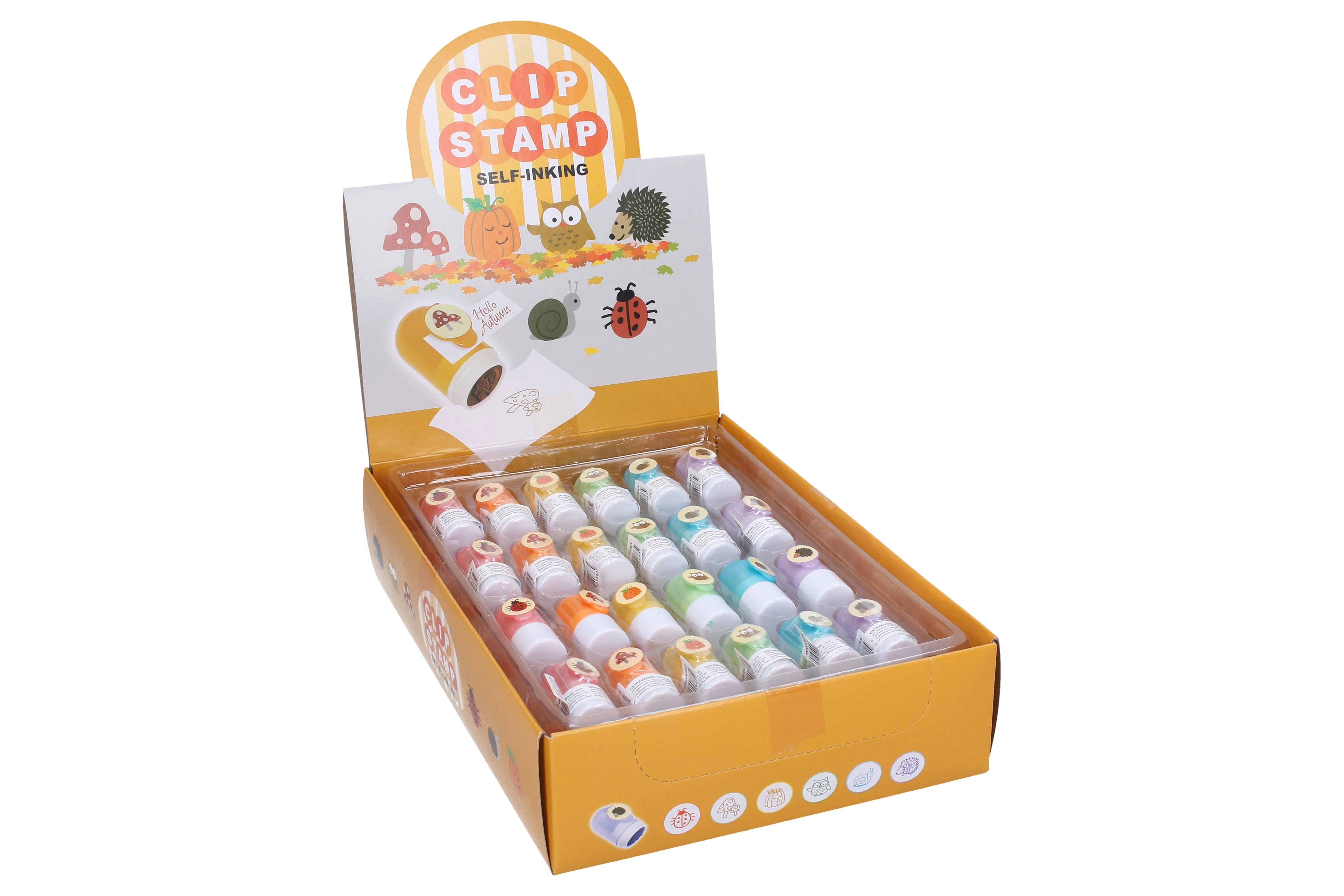 Découvrez de ludiques tampons auto‑encreurs avec clip dans un assortiment amusant de motifs, idéaux pour les enfants, les activités créatives et les récompenses. Le clip pratique permet d’avoir le tampon toujours à portée de main, et 48 pièces en présentoir sont parfaites pour l’école, le bureau et la maison. Six variantes joyeuses : coccinelle, champignon, citrouille, chouette, escargot et hérisson.