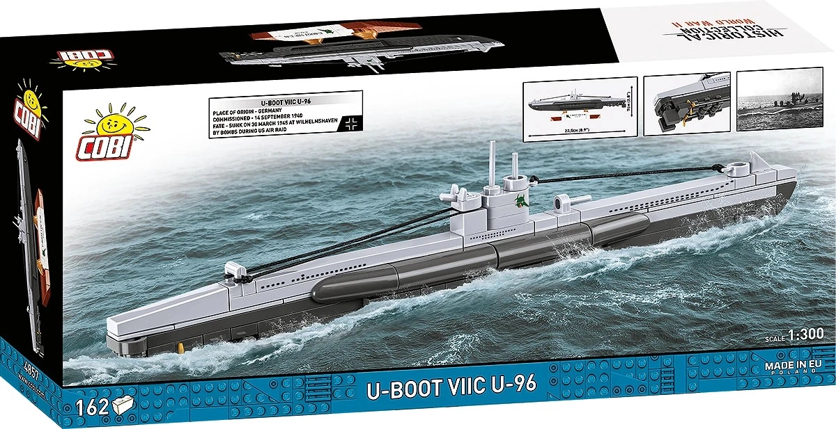 Assemblez le légendaire sous-marin U-BOOT VIIC U-96 à l’échelle 1:300 à partir de 162 pièces. Ce kit européen de qualité ravira les collectionneurs, les passionnés d’histoire et les amateurs du film Das Boot. Il offre des détails réalistes de la coque, une tourelle avec périscope et un élégant support pour la présentation du modèle.