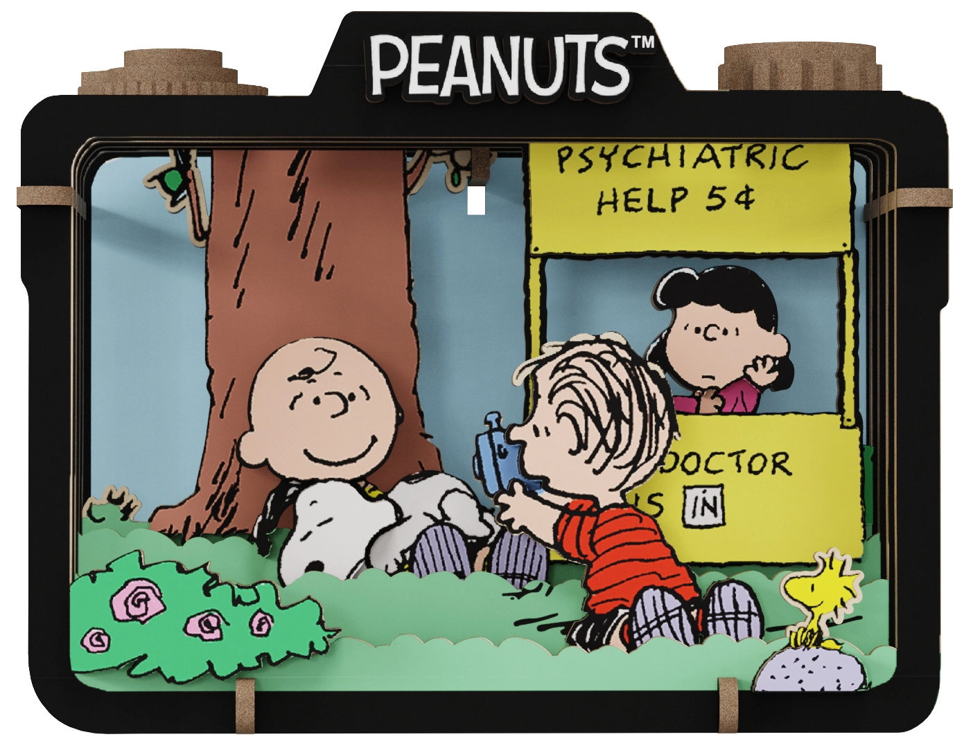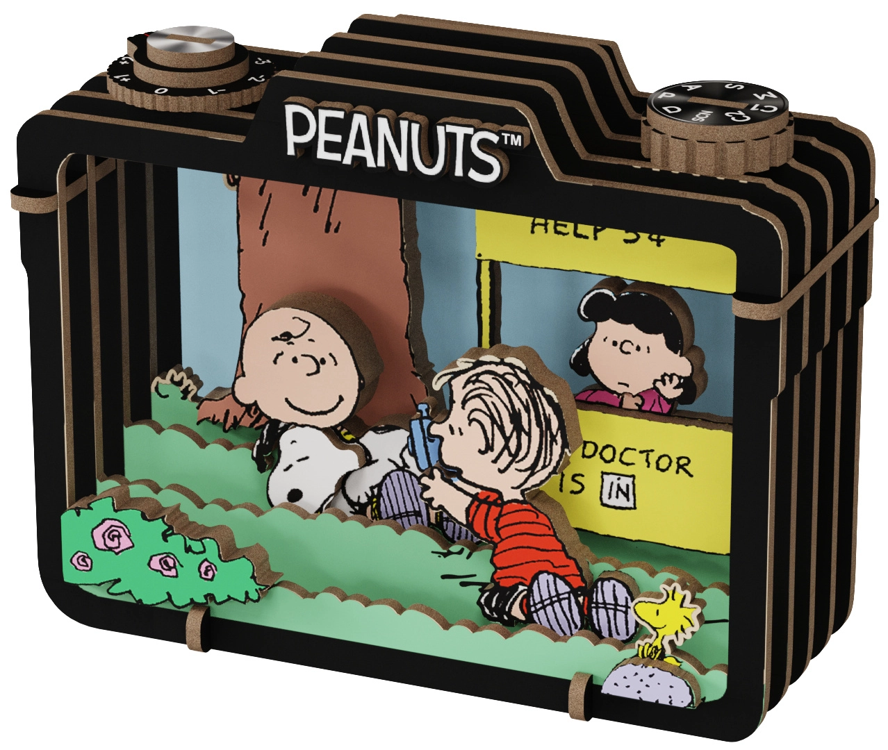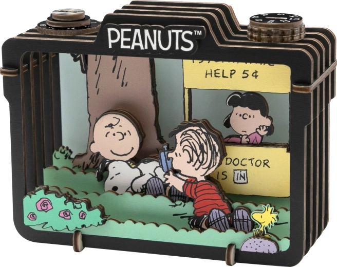 Capturez l’atmosphère insouciante de l’été avec Snoopy et ses amis dans un diorama en bois détaillé.